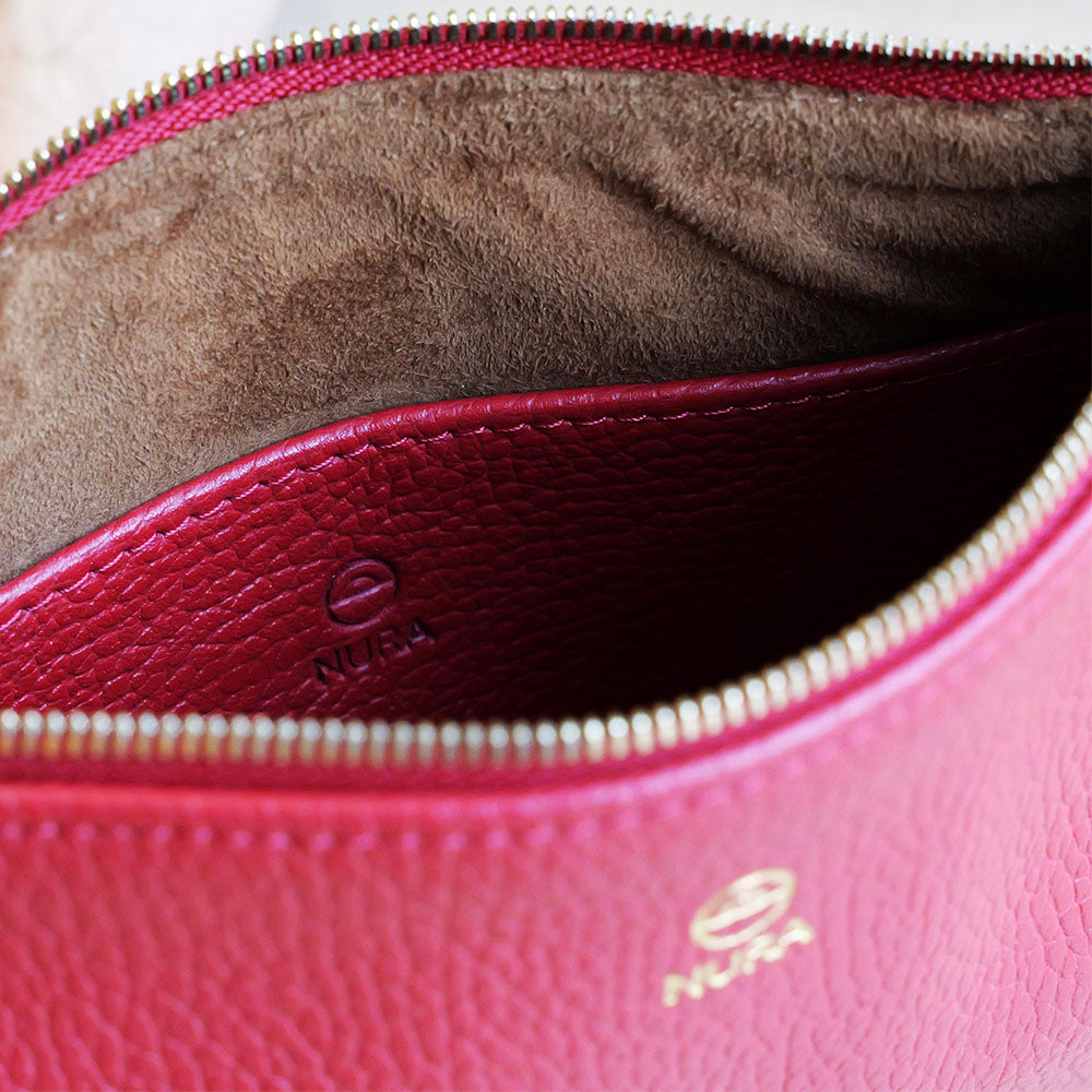 Combina los colores de la piel granulada del exterior, del serraje interior y de la cremallera. Dale tu toque. Tu bolso, tu estilo.