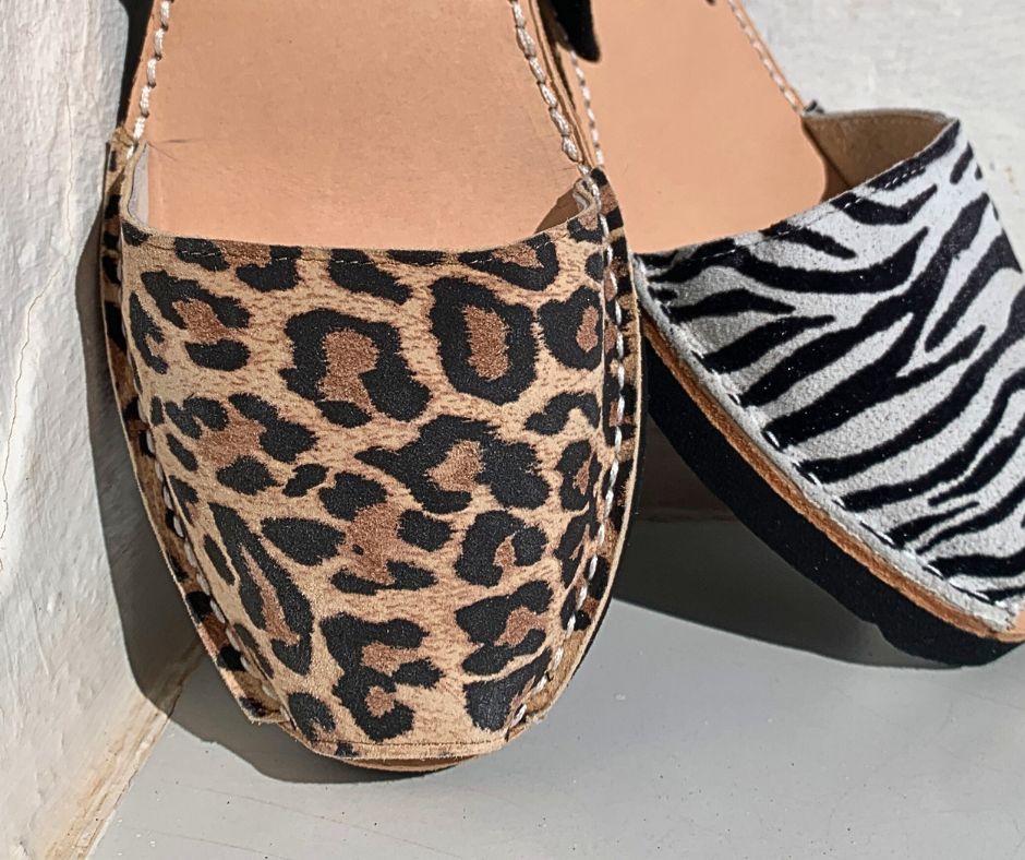 Abarca Menorquina - Mujer - Piel Ante - Cuña Alta - Color Leopardo