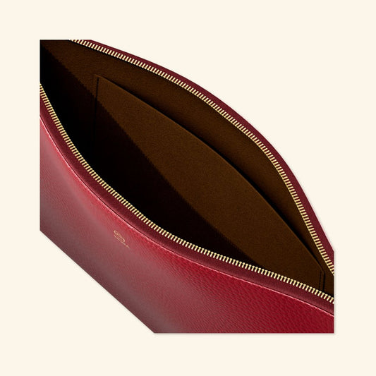 Granulado Burdeos con Interior Marrón en Piel de Serraje y Bolsillo de Piel Granulada