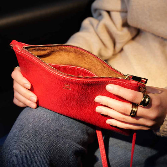 Bolso Bandolera de Piel para Mujer (Pequeño de Fiesta) - Rojo Cherry & Choco